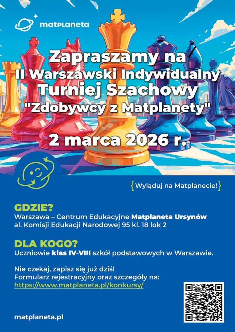 14 marca 2025 roku w Centrum Edukacyjnym Matplanety, przy al. KEN 95 w Warszawie, odbył się I Warszawski Turniej Szachowy „Zdobywcy z Matplanety”. W turnieju wzięło udział 69 uczestników z 14 warszawskich szkół podstawowych. Zawody rozegrano w dwóch kategoriach wiekowych: